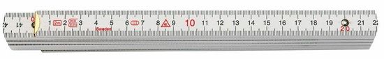 Material: bukev Površina: Lakirana, bela Merilo: mm/cm, 2 delni, obojestranski tisk Število segmentov: 10 Debelina segmentov: 3,2 mm Razred točnosti po EC standardu: III Spoji: iz vzmetnega jekla, notranji