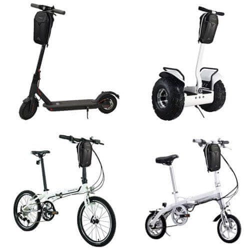 Univerzalna pritrditev – zahvaljujoč štiritočkovnemu sistemu z ježki se torba za skiro stabilno pritrdi na krmilo in ustreza večini modelov skirojev.