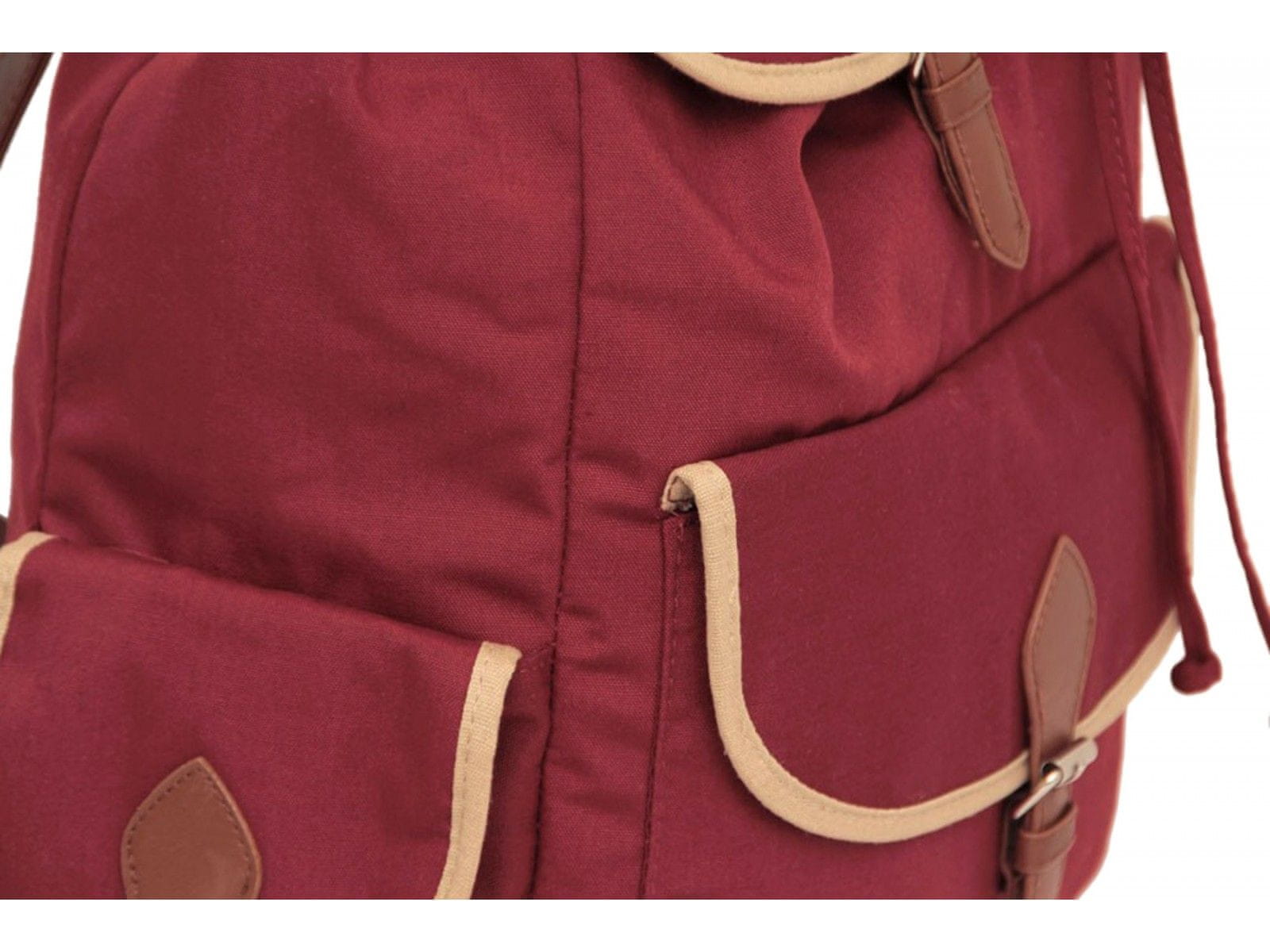 Velik, bordo nahrbtnik je kakovostno izdelan in skrbno zaključen z mehkim, rjavim ekološkim usnjem.