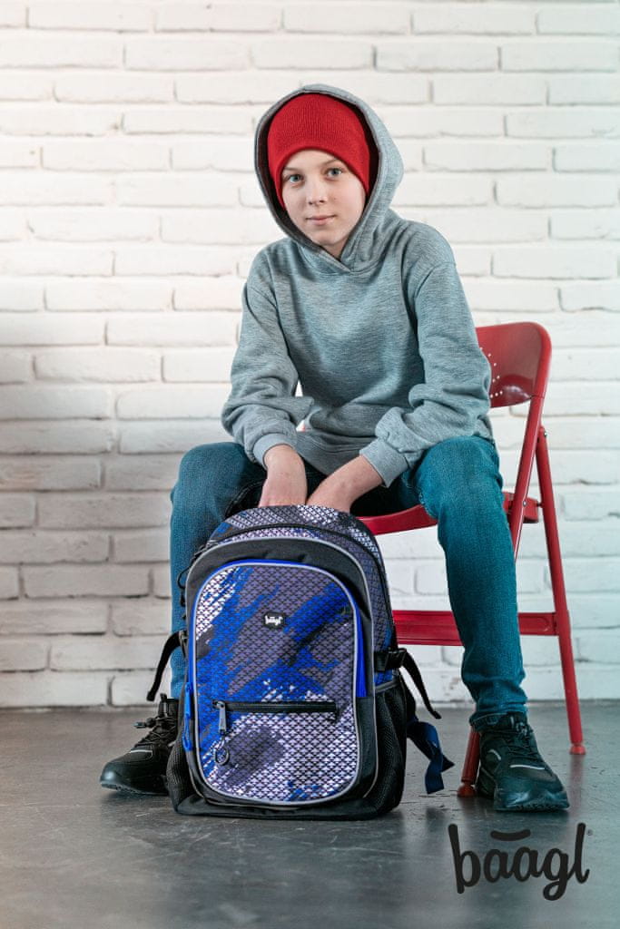 – Ergonomski šolski nahrbtnik s tremi ločeno zapirljivimi predali z notranjim organizatorjem in žepom za 15-palčni prenosni računalnik ali tablični računalnik.
