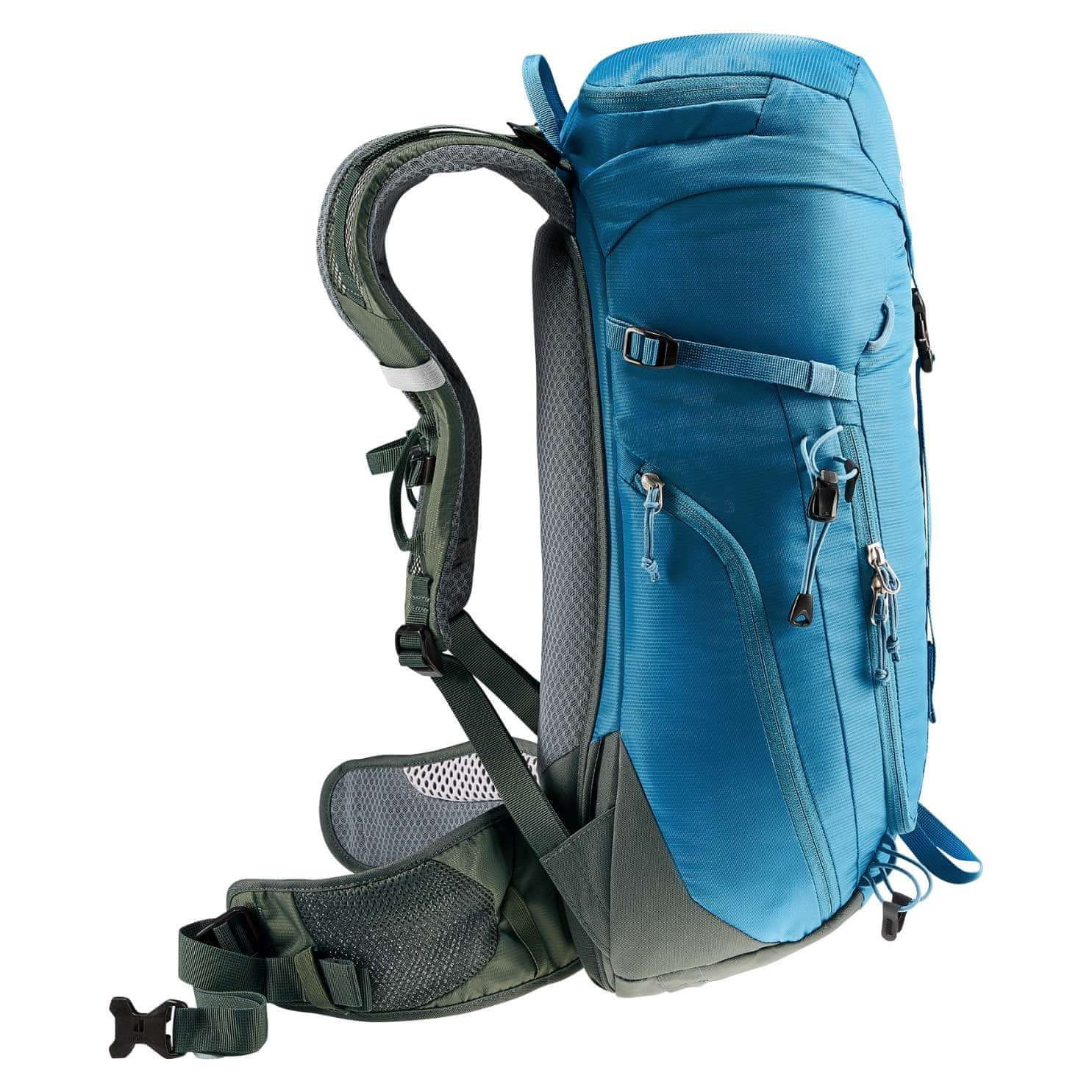 Deuter Trail 18 je lahek in vsestranski pohodniški nahrbtnik, zasnovan za zahtevne terene. Z deuterjevim Airstripes hrbtnim sistemom omogoča maksimalno zračnost, saj ima zmanjšano kontaktno površino in široke prezračevalne kanale. Ta zasnova omogoča, da nahrbtnik tesno objame telo za optimalno porazdelitev teže, kar zagotavlja varen oprijem na vsakem terenu. Perforirane naramnice in bočne opore nudijo dodatno zračnost in udobje.