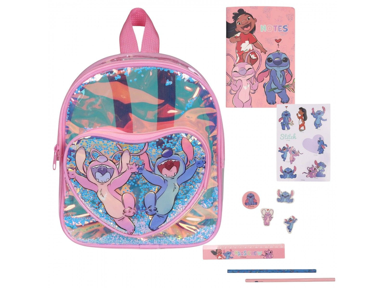 Disney Disney Stitch Otroški, prozoren nahrbtnik, majhen nahrbtnik za vrtec + dodatki 24x21x6 cm