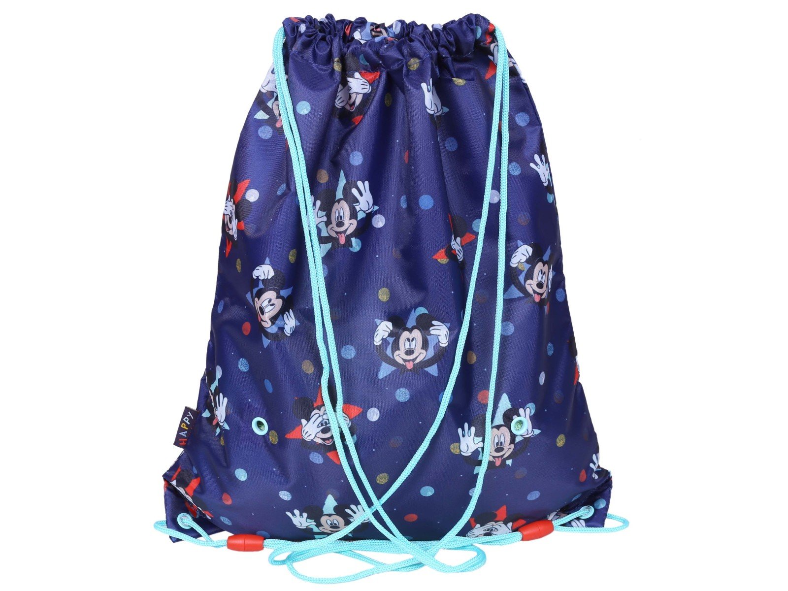 Temno moder telovadni nahrbtnik z motivom Mickey Mouse, junaka risank Disney.Nahrbtnik z večkrat ponavljajočimi se podobami Mickey Mouse in pikčastim vzorcem.Nahrbtnik ima dve zategovalni vrvici v mint barvi.Odličen za šolo, bazen ali izlet. Dimenzije:36 cm x 44 cm Celoten opis