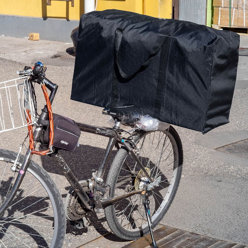 Preprosta potovalna torba z izjemno veliko prostornino iz trdega poliestrskega materiala, z zgornjim ročajem, brez predala za prenosni računalnik. Celoten opis