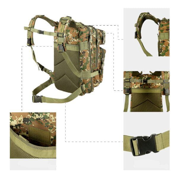 - Mere in prostornina nahrbtnika: 42 × 23 × 24 cm, 30 litrov