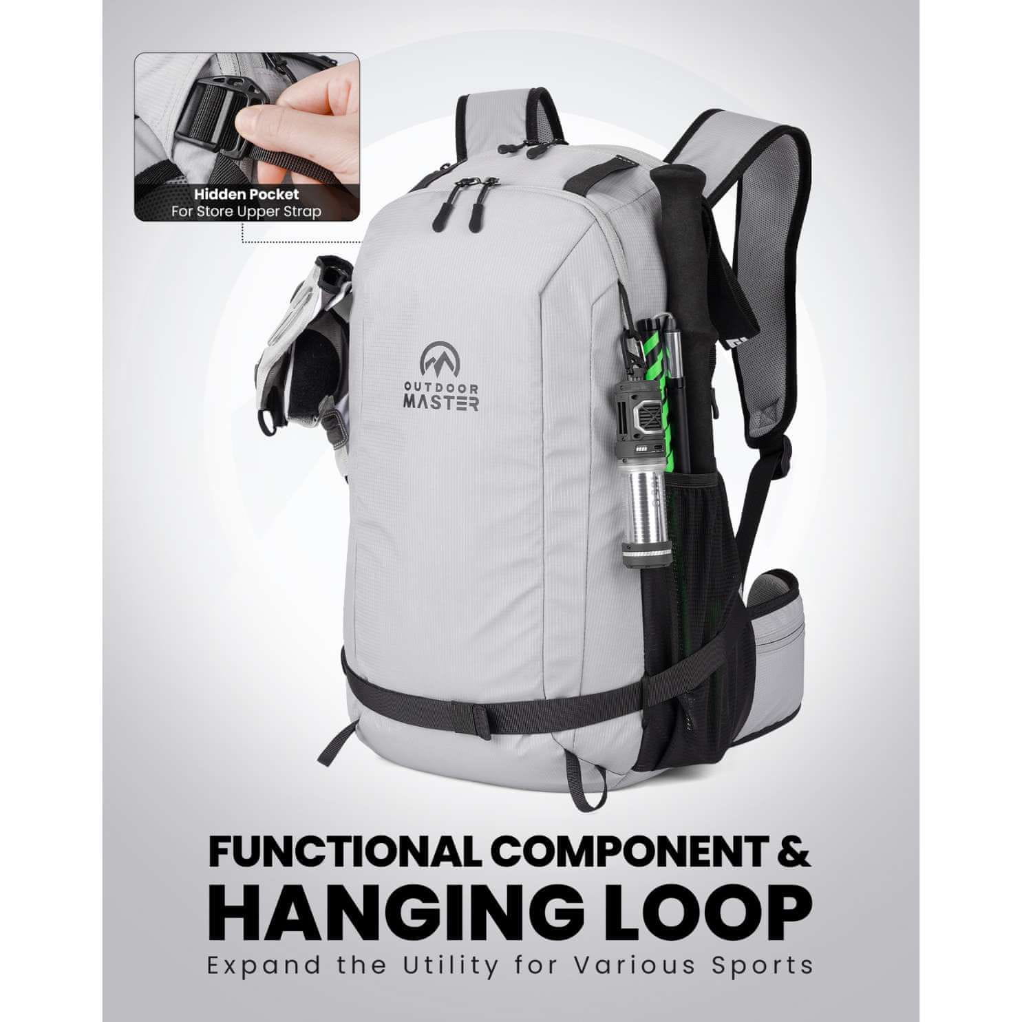 Zanesljiv in funkcionalen nahrbtnik za aktivne dni v naravi, na smučišču ali v mestu. OutdoorMaster 35L športni nahrbtnik je lahek, vodoodbojen in narejen iz recikliranih materialov – odličen za smučanje, pohodništvo, kolesarjenje ali potovanja.