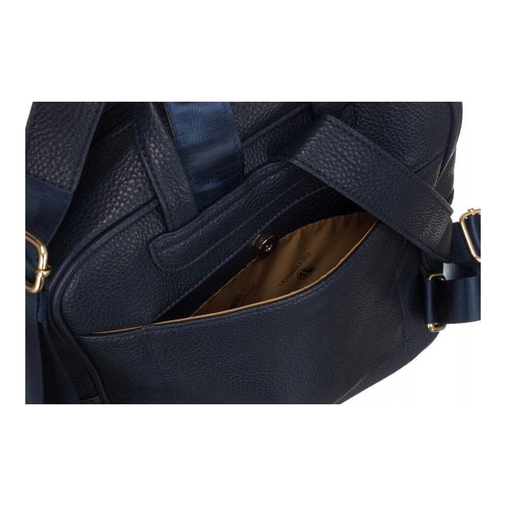 Prostoren ženski nahrbtnik iz eko usnja – Peterson Natančno šivanje | Izdelano iz eko usnja z zrnato teksturo; Praktičen | Zapira se z zelo varno zadrgo. Opremljen z držalom za kovček; Prostoren | Nahrbtnik ima en predal, notranjost je podložena s poliestrom. V notranjosti sta dva žepa. Celoten opis
