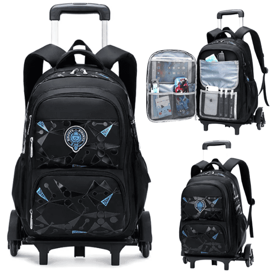 Odkrijte funkcionalnost in stil z našim šolskim nahrbtnikom na kolesih, zasnovanim posebej za učence od 4. do 6. razreda. Ta prostorna in trpežna šolska torba je odlična izbira za fante, ki cenijo tako moden dizajn kot praktičnost. Naš nahrbtnik izstopa ne le po svoji estetski privlačnosti, temveč tudi po visokokakovostni izdelavi. Opremljen je z robustnimi kolesi, ki zagotavljajo enostaven transport, tudi s težkim bremenom. Zahvaljujoč teleskopskemu ročaju se lahko nahrbtnik kotali kot kovček, kar znatno zmanjša obremenitev otrokovega hrbta, še posebej med dolgim dnevom v šoli. Ta šolska torba je neverjetno prostorna in ponuja prostor za vse bistvene šolske potrebščine, knjige in zvezke. Številni žepi in predali omogočajo enostavno organizacijo. To pomeni, da ima otrok hiter dostop do vseh potrebnih predmetov kadar koli v dnevu. Trpežen material, iz katerega je izdelan nahrbtnik, zagotavlja odpornost na slabo vreme in vsakodnevno uporabo. Modne barve in sodoben dizajn poudarjajo osebnost vsakega mladega uporabnika, zaradi česar je nošenje užitek. Investirajte v udobje in stil – izberite naš šolski nahrbtnik na kolesih za svojega otroka in si zagotovite udobno šolsko leto!