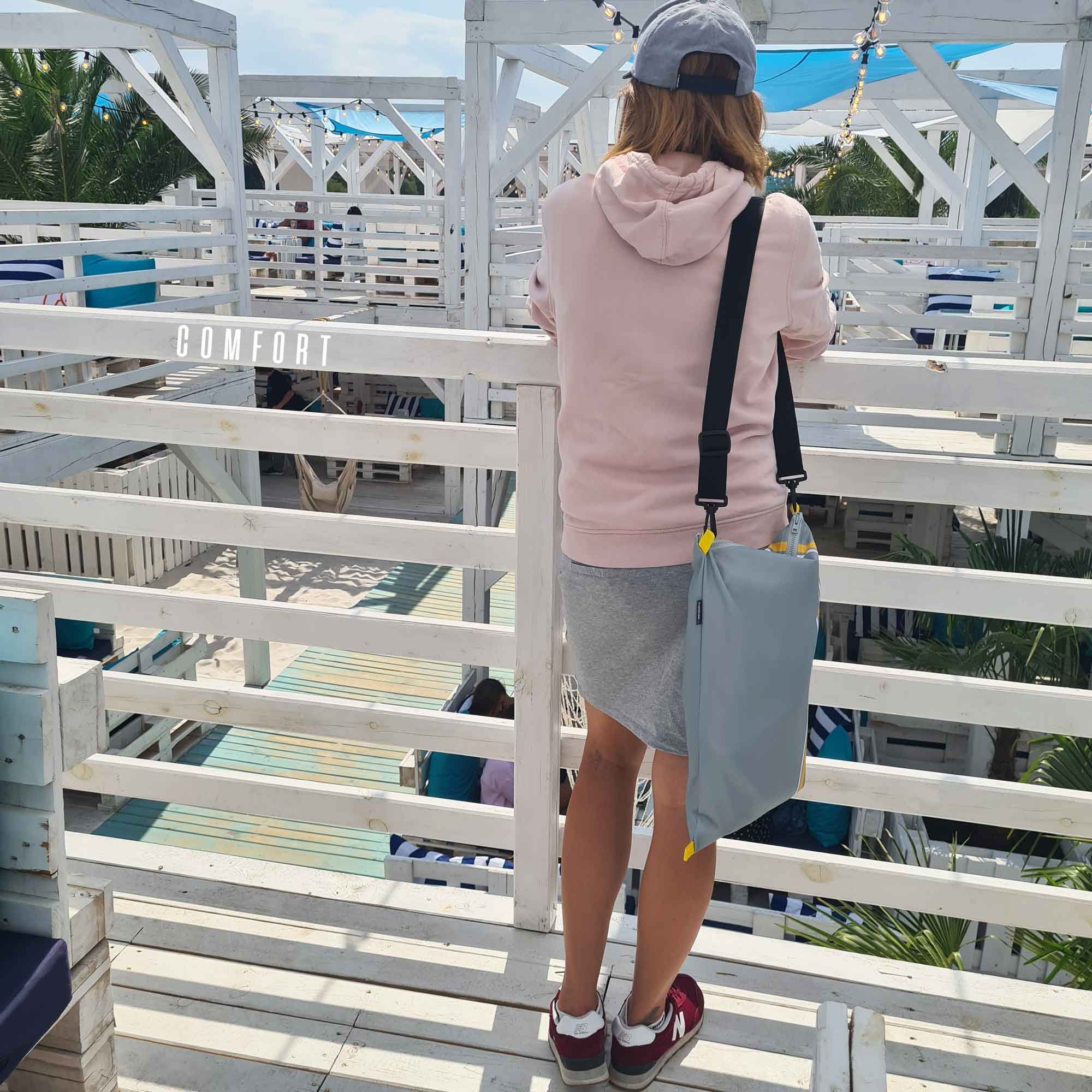 Zippak je pametna kombinacija nahrbtnika in športne torbe, ki se prilagaja vašim načrtom. Lahek, kompakten in z zadrgo je popoln za potovanja, kolesarjenje, mesto in plažo. Športni nahrbtnik in lahek potovalni nahrbtnik v enem je Zippak popoln sopotnik – lahek, priročen in pripravljen na vsako pustolovščino. Zložen zavzame enako prostora kot nahrbtnik, razložen pa se spremeni v praktičen nahrbtnik z dvema nastavljivima naramnicama. Nosite ga lahko tradicionalno na hrbtu ali pa ga obesite čez ramo – kar vam je ljubše. Zippak je popoln za letalo, sprehode po mestu, plažo in počitnice. Vodoodporen material: Zippak, izdelan iz lahkega, vodoodpornega materiala, ščiti vaše stvari pred dežjem in vlago. Ne glede na to, ali vas ujame nenaden naliv ali se usedete na moker pesek, vaše stvari ostanejo suhe in varne.