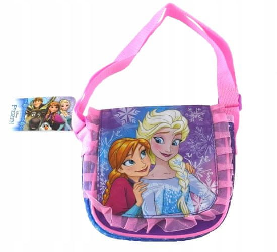 Torba za čez ramo s pravljičnimi junaki Ledenega kraljestva in nastavljivim trakom. Zapenja se z ježkom in ima en notranji predal za manjše predmete male princeske.
