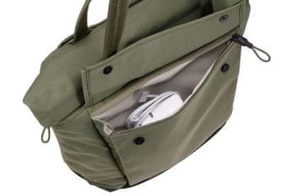 Naramna torba Thule Paramount ima sodoben videz in praktično obliko. Nudi oblazinjen predal za prenosnik, velik do 40,64 cm (16''). Dodatek blaga nad zadrgo zaščiti vaše predmete pred vodo. Predmete lahko shranite v glavni predel z ločenimi žepi, zunanji sprednji in stranski žep ter zadnji žep z zadrgo, namenjen za pomembne premete, kot so osebni dokumenti. Najlonska tkanina s prevleko in vodoodporna zadrga varujejo vaše stvari ob slabem vremenu. Z zanko za kolesarsko luč in odsevnimi detajli ostanete vidni ponoči Ne vsebuje PFC. Izdelki Thule imajo certifikat bluesign®, ki zagotavlja zaščito delavcev, potrošnikov in okolja.