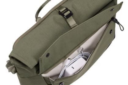 Naramna torba Thule Paramount ima eleganten in sodoben videz. Nudi oblazinjen predal za prenosnik, velik do 35,56 cm (14''). Do glavnega predela lahko dostopate preko dveh odprtin, za čim bolj priročno uporabo. Zapiranje z zvijanjem blaga zaščiti vaše predmete pred vodo. Predmete lahko shranite v glavni predel z ločenim žepom z zadrgo, zunanji žep in zadnji žep z zadrgo, namenjen za pomembne premete, kot so osebni dokumenti. Najlonska tkanina s prevleko in vodoodporna zadrga varujejo vaše stvari ob slabem vremenu. Z zanko za kolesarsko luč in odsevnimi detajli ostanete vidni ponoči Ne vsebuje PFC. Izdelki Thule imajo certifikat bluesign®, ki zagotavlja zaščito delavcev, potrošnikov in okolja.