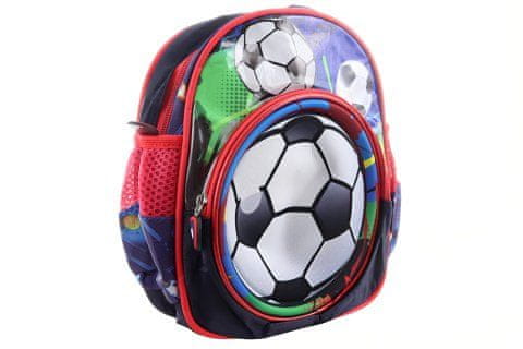 Nahrbtnik iz blaga z motivom nogometne žoge. Sprednja stran je oblikovana. Nahrbtnik nima prsnega traku. Pakiran je v vrečko. Dimenzije 22×25×8 cm. Izdelek ni igrača.