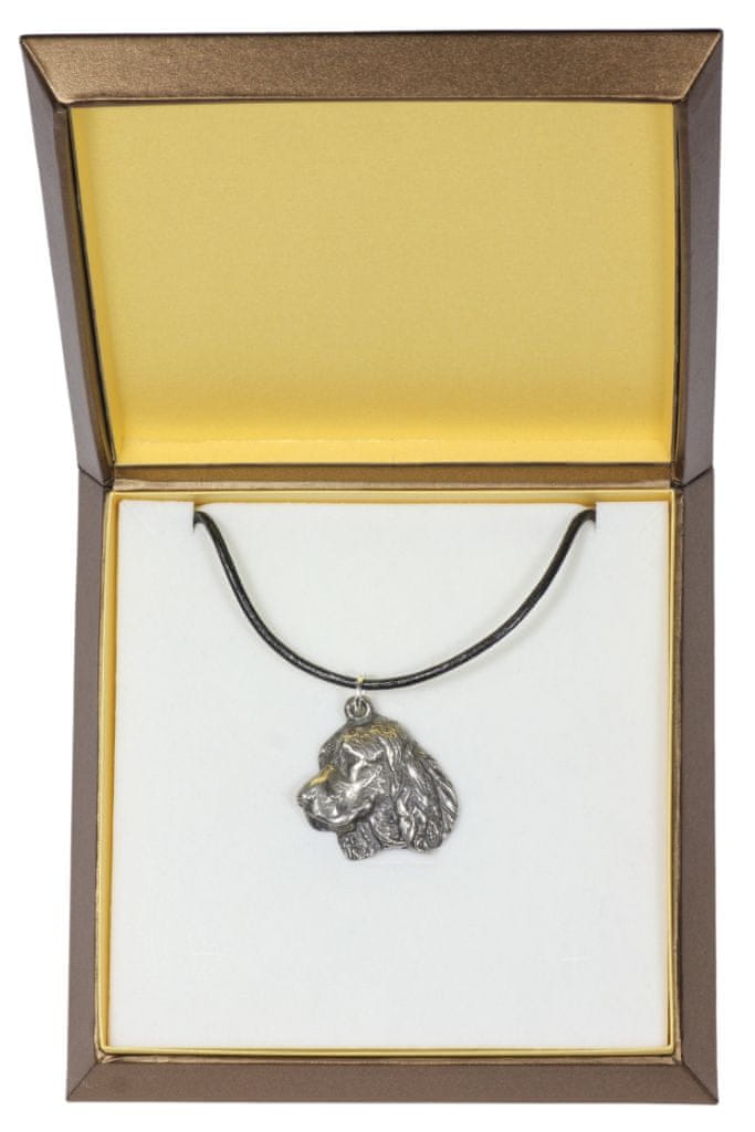 Artdog Welsh Springer Spaniel - verižica s psom v darilni škatli, posrebreni medaljon za oboževalca psov, privlačen obesek Art-Dog