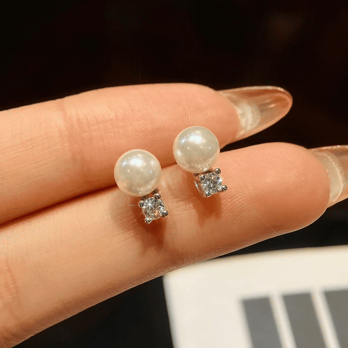 Vsak uhan krasi nežna biserna oblika, dopolnjena z briljantno brušenim moissanitom velikosti 0,1 ct.