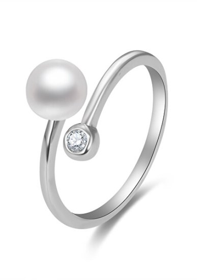 Beneto Odprti srebrni prstan s pravim biserom in cirkonom AGG469P