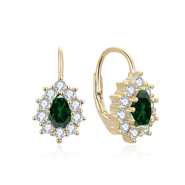 Beneto Pozlačeni uhani z zelenimi cirkoni AGUC3298GR-GOLD