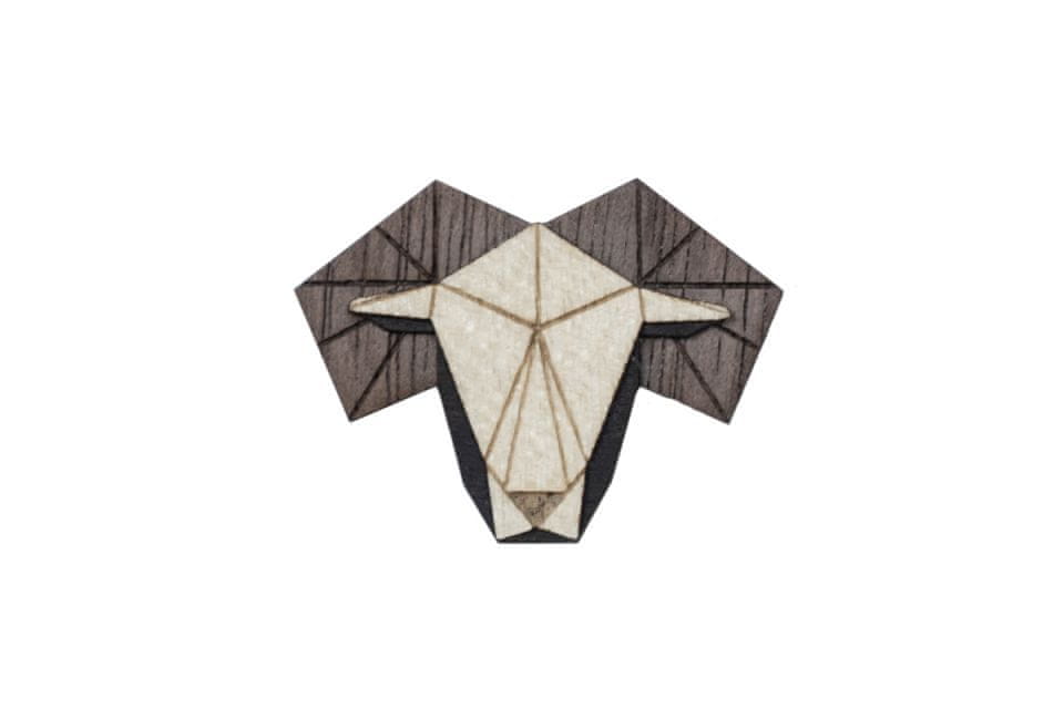 BeWooden lesena broška z motivom ovna Aries Brooch univerzalna