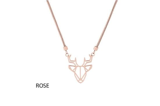 BeWooden ženska veriga Deer Steel Pendant roza