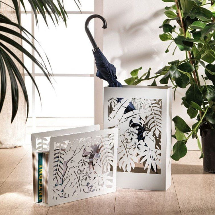 Belo kovinsko stojalo za časopise bo doprineslo k urejenosti vašega doma, s tropskim motivom pa bo vaše misli poneslo na brezskrbno potovanje okrog po svetu. Vaš življenjski prostor uredite in dopolnite še z drugimi izdelki iz linije TROPICAL.