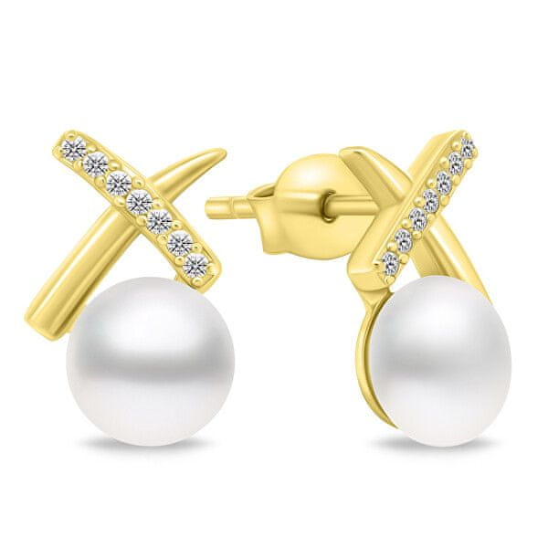 Brilio Silver Bleščeči pozlačeni biserni uhani EA906Y