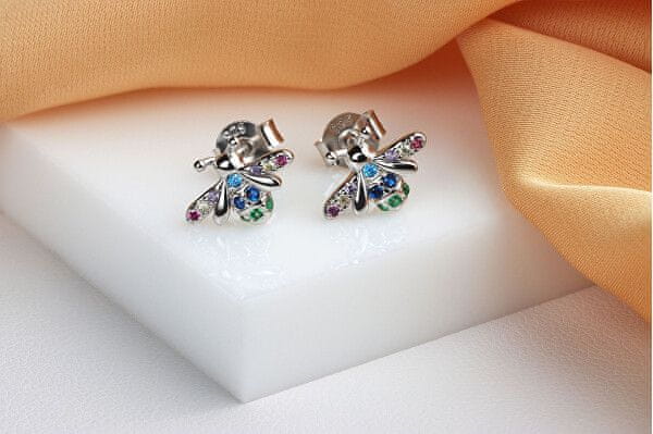 Brilio Silver Igrivi srebrni uhani Čebelice z barvnimi cirkoni EA1102WRBW