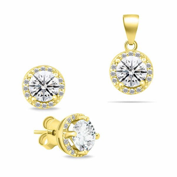 Brilio Silver Komplet nakita s sijajno pozlato in kubičnimi cirkoni SET230Y (uhani, obesek)