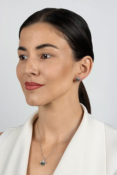 Nežen srebrn komplet nakita Srčki z zelenimi cirkoni SET295WG (ogrlica, uhani). Celoten opis