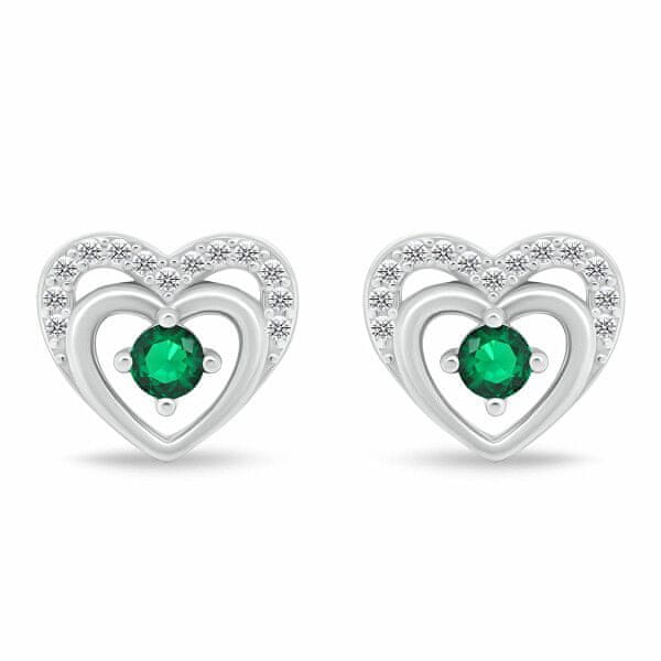 Brilio Silver Nežen srebrn komplet nakita Srčki z zelenimi cirkoni SET295WG (ogrlica, uhani)