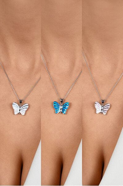 Brilio Silver Nežen srebrn obesek Metulj z modrim opalom PT136WB