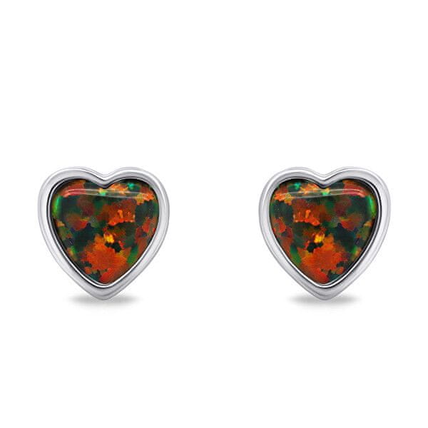 Brilio Silver Nežni srebrni uhani Srca s sintetičnimi opali EA610WBC