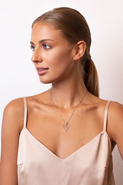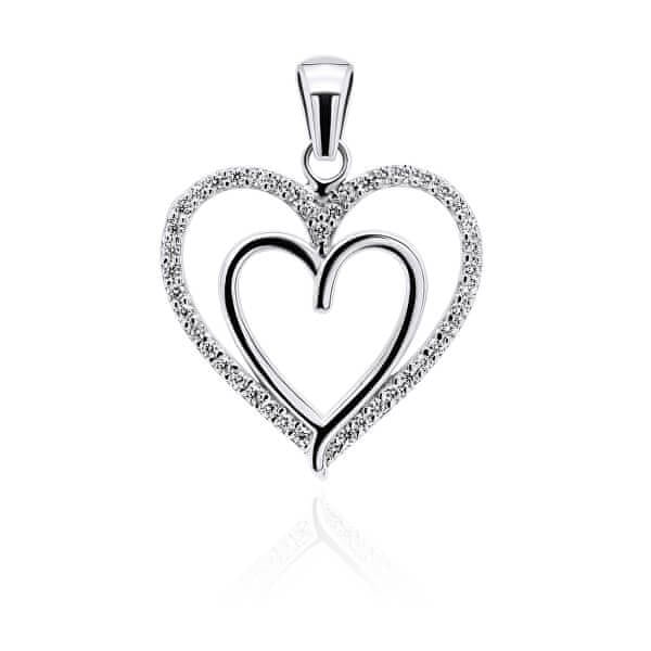 Brilio Silver Očarljiv srebrni obesek v obliki srca s cirkoni PT13W