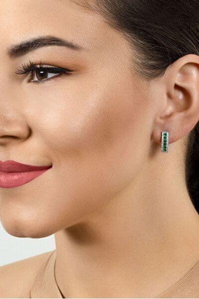 Očarljivi srebrni uhani z zelenimi cirkoni EA294GW. Celoten opis