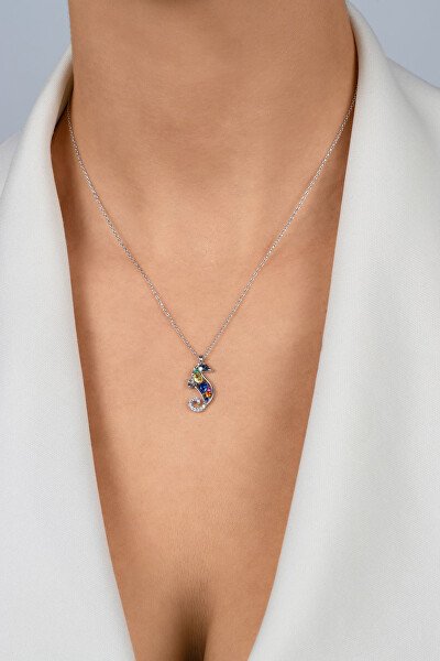 Brilio Silver Pozlačena ogrlica Morski konjiček z barvnimi cirkoni NCL161YRBW