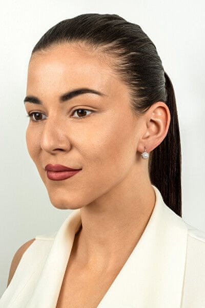 Brilio Silver Pozlačeni uhani z biseri in cirkoni EA426Y