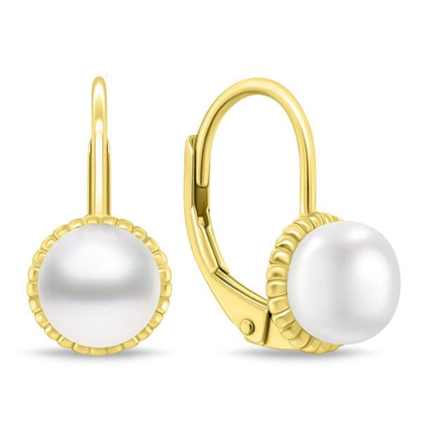 Brilio Silver Pozlačeni uhani z rečnimi biseri EA1140Y