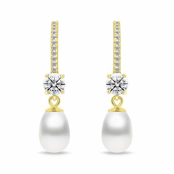Brilio Silver Pozlačeni viseči uhani s kubičnim cirkonom in biserom EA634Y