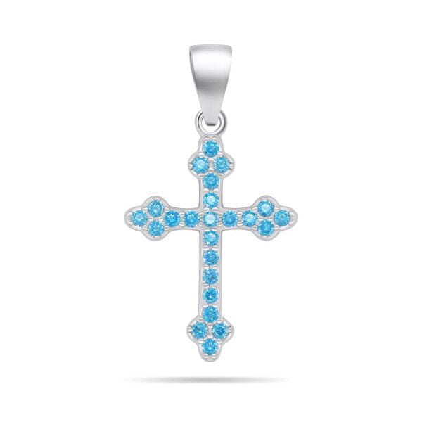 Brilio Silver Srebrn obesek z modrimi cirkoni Križ PT84WAQ
