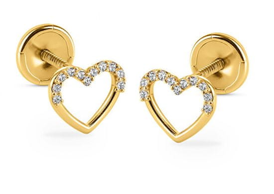 Brilio Uhani v obliki srca iz rumenega zlata s cirkoni 14/255.281/17ZIR