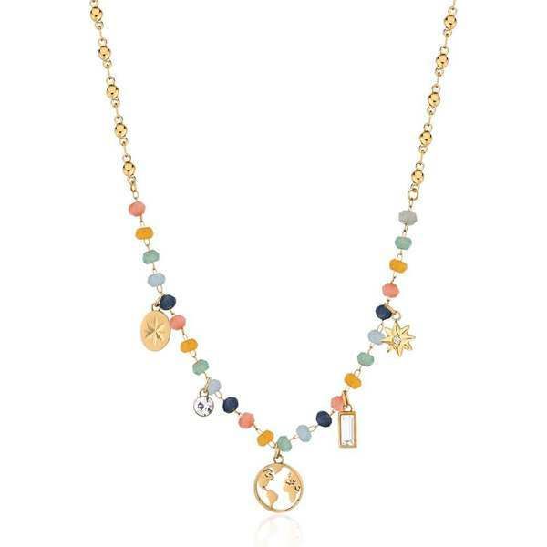 Brosway Dostojna pozlačena ogrlica s perlicami čakre in obeski BHKN083