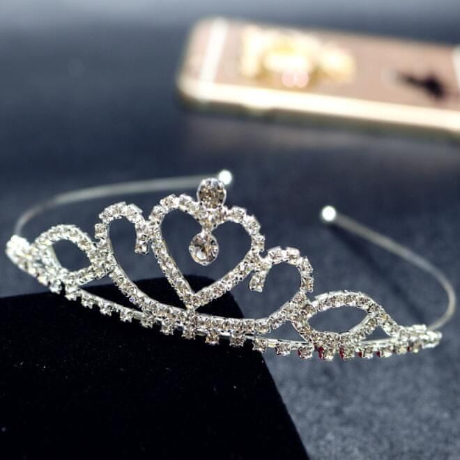 Camerazar Dekorativna tiara diadem s kristalno krono, cinkova žica, dolžina 13 cm