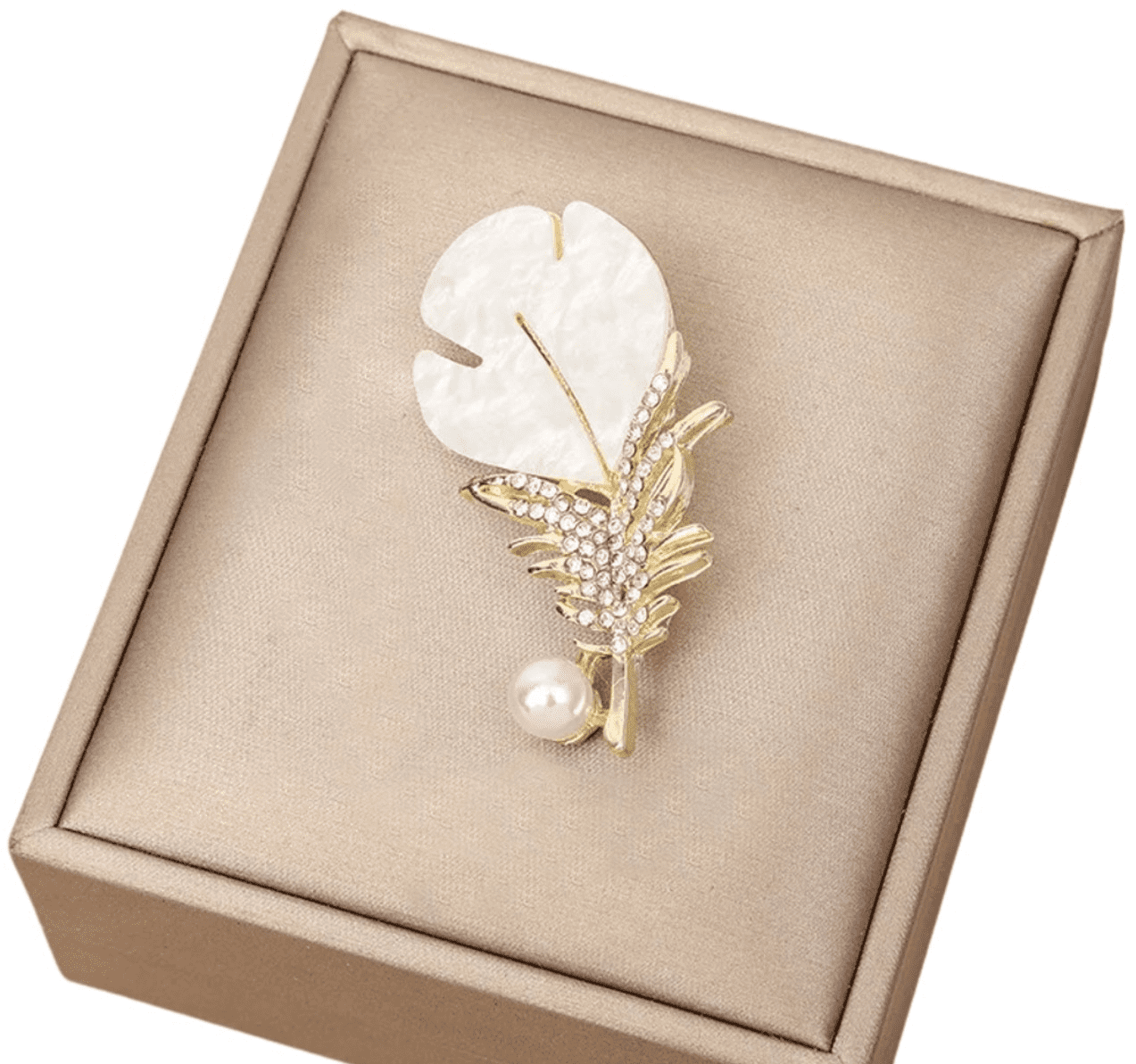 Ta elegantna broška z bisernim perjem in cirkoni je popoln dodatek za vsako žensko, ki želi izstopati. Z višino 5,3 cm in širino 2,8 cm je izdelana iz trdne zlitine za nakit in okrašena s svetlečimi cirkoni, ki vašemu videzu dajejo sijoč učinek. Zlata sponka zagotavlja luksuzen videz, medtem ko biserno pero prinaša nežnost in eleganco. Broška se zapenja z varnostno zaponko, kar zagotavlja varno pritrditev.
