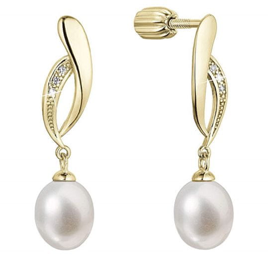 Evolution Group Elegantni pozlačeni uhani z rečnim biserom in cirkoni 21103.1B