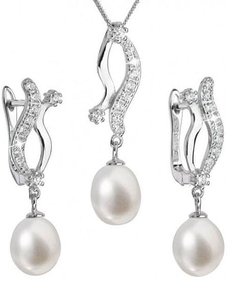 Evolution Group Luksuzen srebrni komplet s pravimi biseri Pavona 29028.1 (uhani, veriga, obesek)