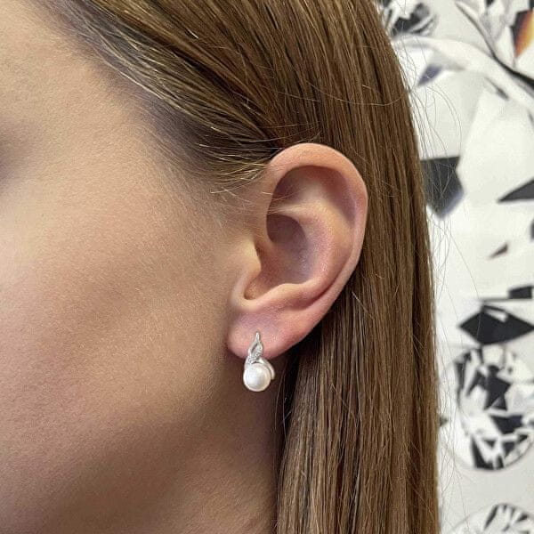 Evolution Group Luksuzni srebrn komplet s pravimi biseri in cirkoni 29054.1B (uhani, verižica, obesek)