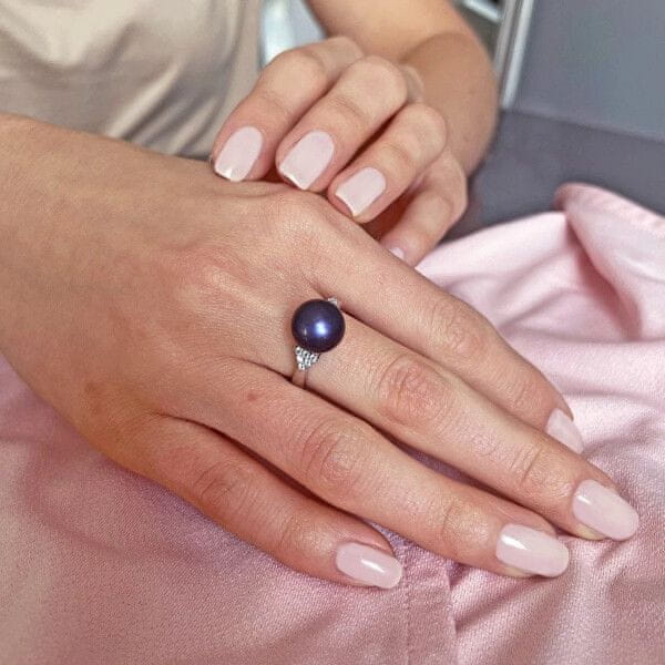 Srebrn prstan s temnim rečnim biserom in cirkoni 25002. 3. Celoten opis