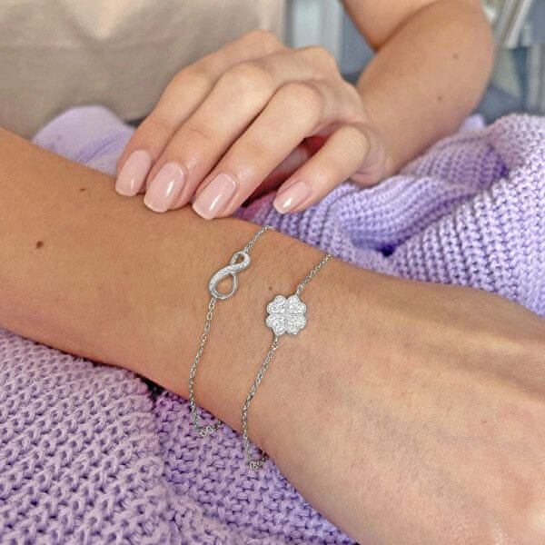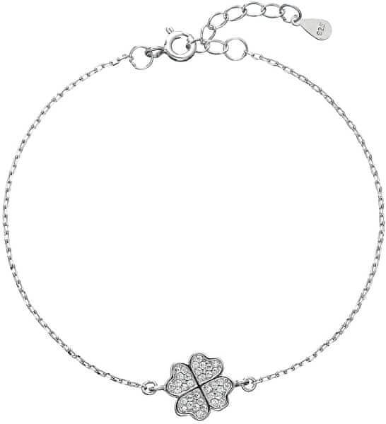 Evolution Group Srebrna zapestnica s cirkoni Štirilistna detelja za srečo 13008.1