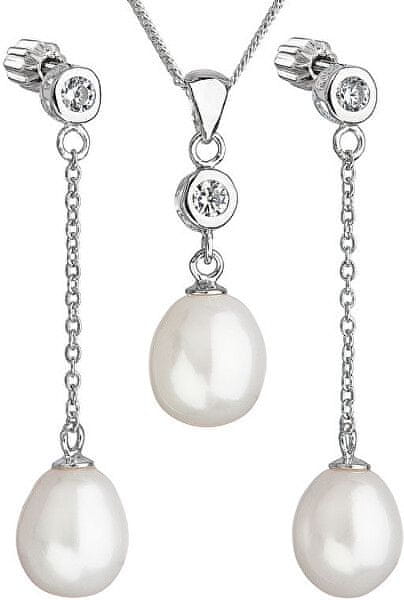 Evolution Group Srebrni biserni komplet s cirkoni Pavona 29005.1B bel (uhani, verižica, obesek)