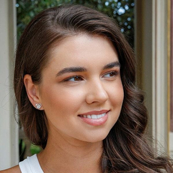 Evolution Group Srebrni uhani s kristali Swarovski belo srce 31259.1