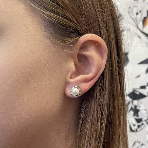 Evolution Group Srebrni uhani z okroglim sladkovodnim biserom in cirkoni 21098.1B